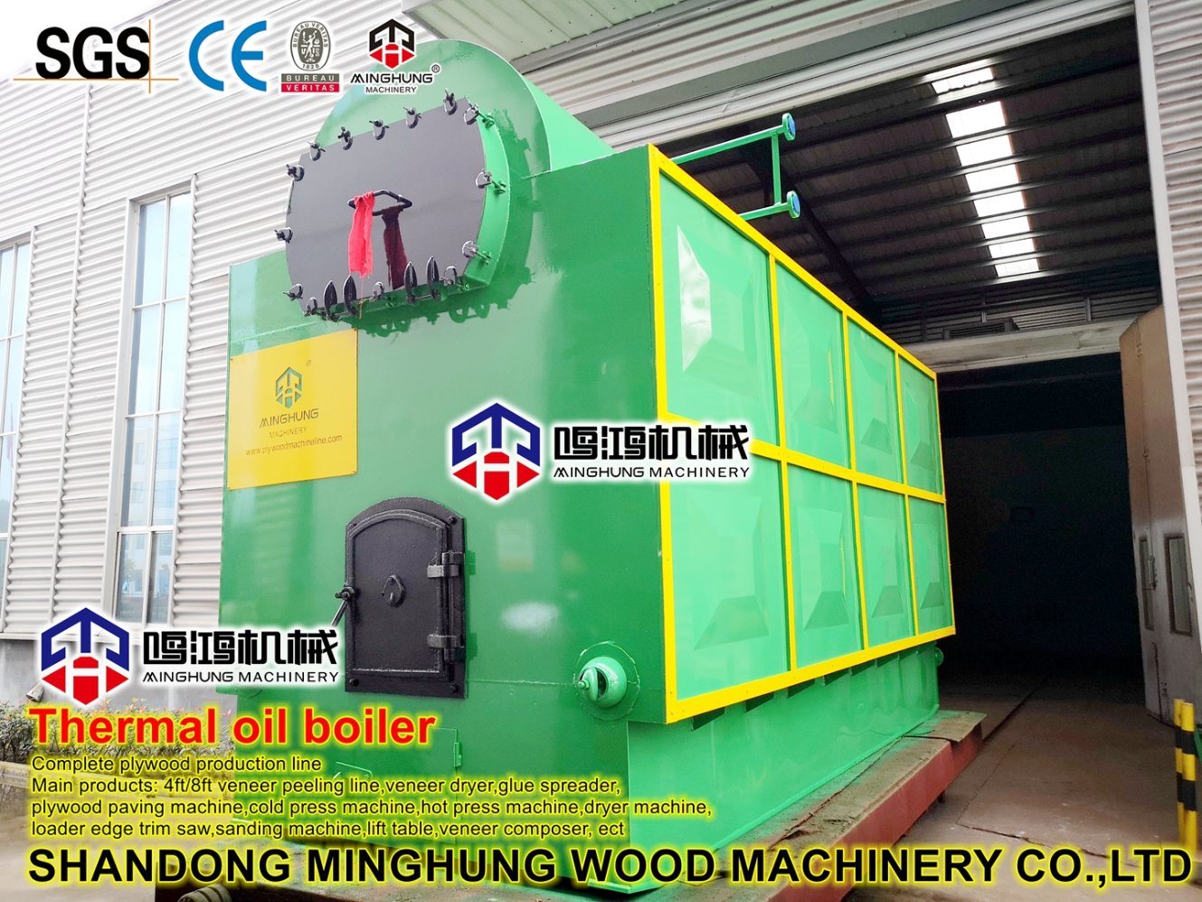 na fábrica de compensado ou folheado de madeira, a caldeira é necessária para oferecer a energia para a máquina de prensagem de compensado, como a prensa a quente, a máquina secadora de folheado.a caldeira pode ser caldeira de vapor e caldeira de óleo.a capacidade da caldeira pode ser diferente, nós a produziremos de acordo com suas próprias condições e necessidades, para atender às suas necessidades de produção. Caldeira a vapor/óleo para indústria de compensados