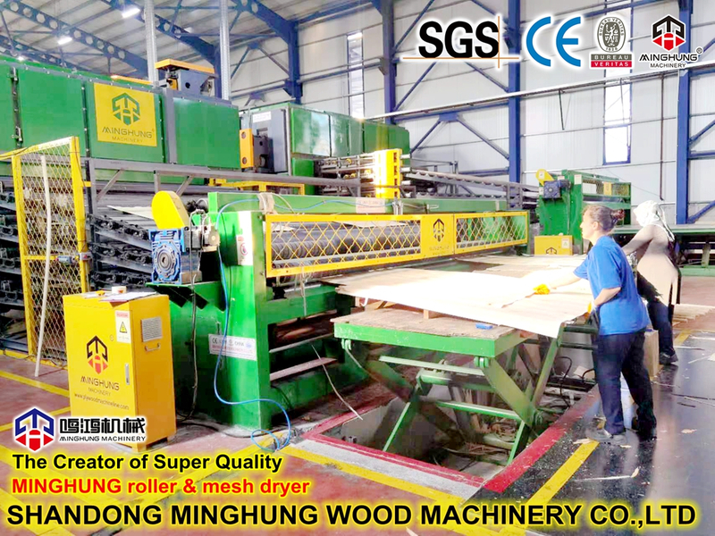 O que é um secador de folheado?MINGHUNG Secador de folheado de rolo para secar o folheado de madeira original, remova a umidade abundante, no final, a umidade do folheado de madeira será de 5% a 10%, por isso é adequado para fazer compensado.Rolo de folheado secador são adequados para grande capacidade de secagem por dia, pode ser diferente comprimento, largura