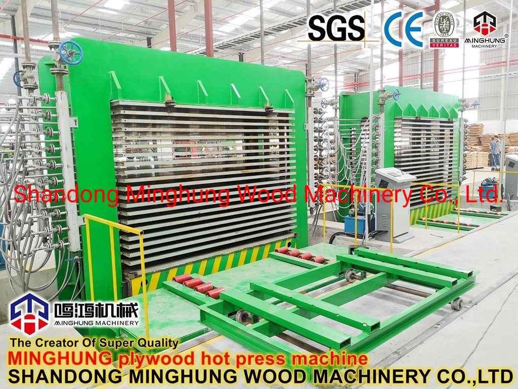 A produção de tipos de madeira compensada, como madeira compensada para móveis, madeira compensada para construção, madeira compensada marítima, prensa hidráulica a quente é a máquina necessária e importante. E se você produzir madeira compensada para construção, precisa laminar melamina na superfície da madeira compensada.exigirá pressão de prensa quente maior, então geralmente a máquina de prensagem a quente de melamina 800t está ok e suficiente, o efeito de prensagem é muito bom. Imprensa Quente's estrutura não complexos, consistem principalmente em: a estrutura da máquina, placas quentes, estação hidráulica, cilindro. Pode ser pressão e camadas diferentes de acordo com as condições reais, como 500t, 600t, 800t, 1000t, 1200t.8 camadas, 10 camadas, 12 camadas, 15 camadas, 20 camadas, 25 camadas