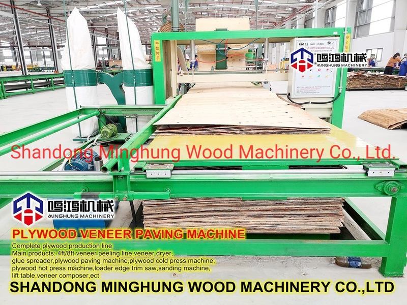 Linha de Pavimentação de Folheado de Madeira Compensada para Linha de Produção de Madeira Compensada a função da linha de pavimentação de folheado de madeira compensada é: coloque o folheado de madeira colado, e a linha avançará automaticamente, e cortará automaticamente no tamanho da madeira compensada e empilhamento automático, esta máquina melhorará a eficiência da produção de madeira compensada.
