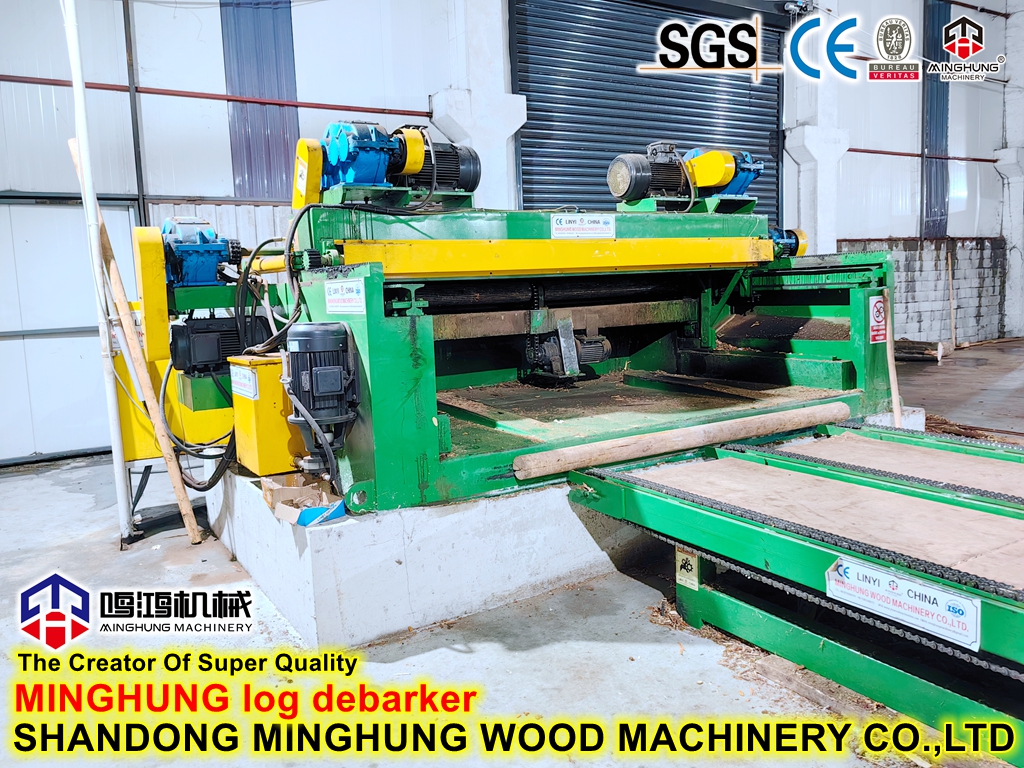Descasque: Um descascador de tambor ou descascador de anel remove a casca para garantir uma superfície lisa do folheado.