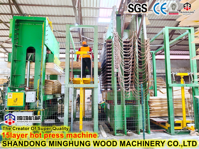 O “coração” da linha de produção. Ao fornecer um ambiente preciso de alta temperatura e alta pressão, cura rapidamente o adesivo na manta, conseguindo uma colagem permanente. Seu desempenho determina diretamente a resistência mecânica final e a qualidade do compensado.