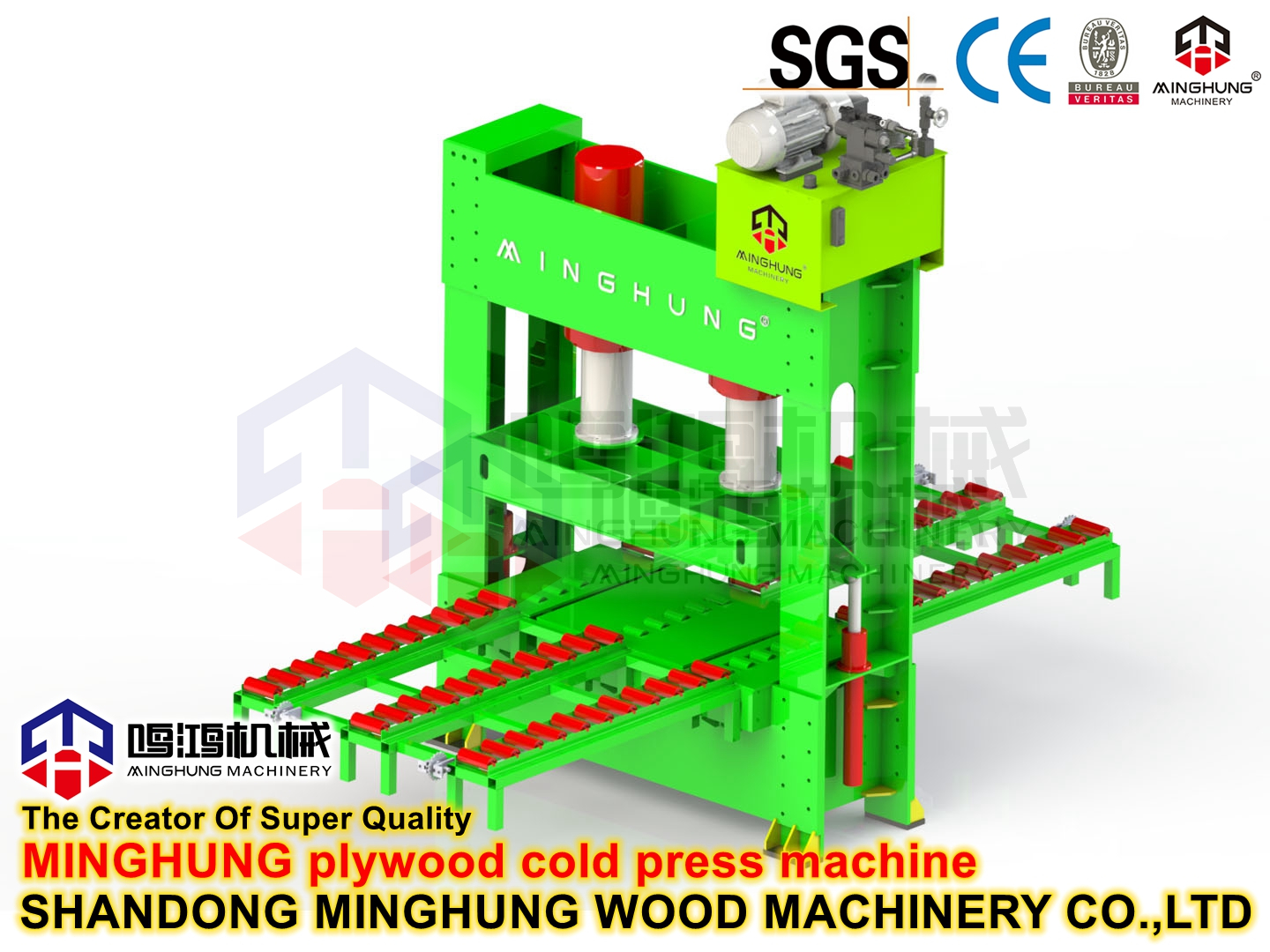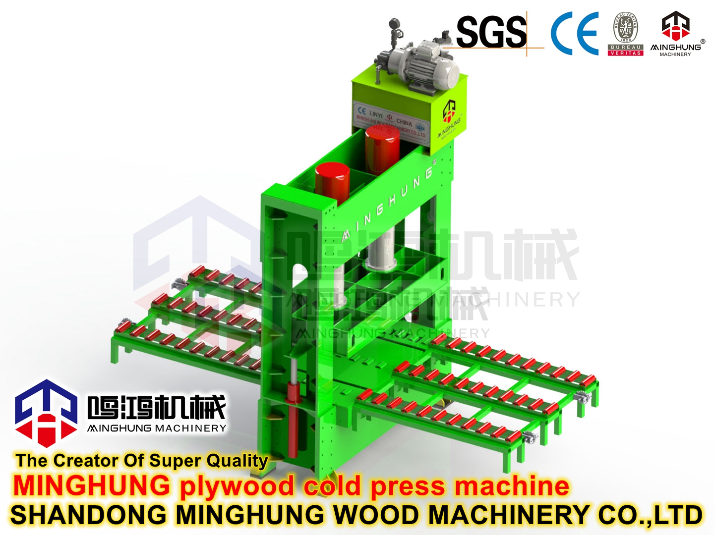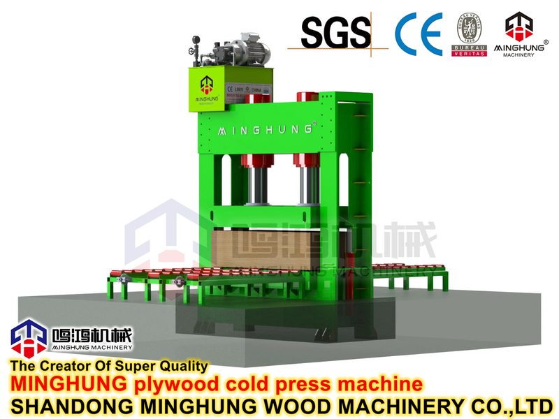 Normalmente, a pressão da máquina de prensagem a frio pode ser de 400 toneladas, 500 toneladas e 600 toneladas, para tamanho padrão de compensado de 4 x 8 pés, prensas a frio de 500 toneladas são boas e suficientes.