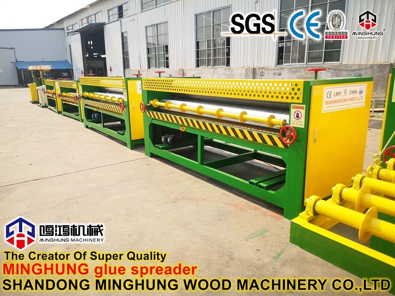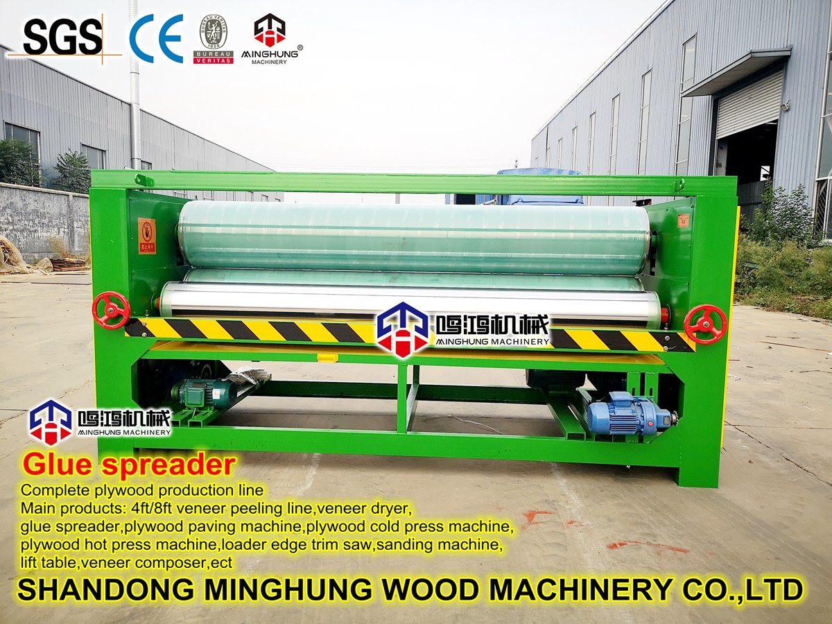 A função do espalhador de cola é revestir a cola na superfície do folheado de madeira e, em seguida, colocá-los no tamanho da madeira compensada.