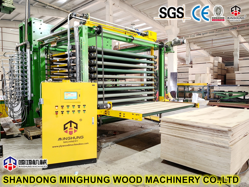 Normalmente aconselhamos equipar com carregador semiautomático para sua prensa a quente, assim você pode laminar as duas faces do compensado ao mesmo tempo. melhorar a capacidade de produção.