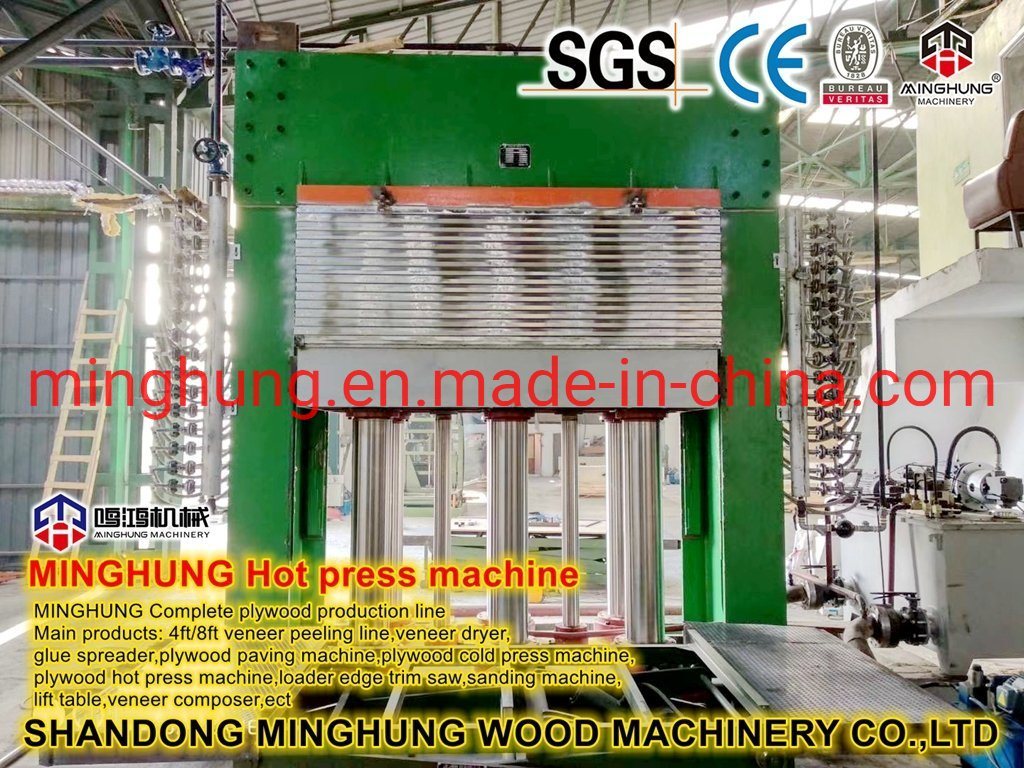 A produção de tipos de madeira compensada, como madeira compensada para móveis, madeira compensada para construção, madeira compensada marítima, prensa hidráulica a quente é a máquina necessária e importante. E se você produzir madeira compensada para construção, precisa laminar melamina na superfície da madeira compensada.exigirá pressão de prensa quente maior, então geralmente a máquina de prensagem a quente de melamina 800t está ok e suficiente, o efeito de prensagem é muito bom. Imprensa Quente's estrutura não complexos, consistem principalmente em: a estrutura da máquina, placas quentes, estação hidráulica, cilindro. Pode ser pressão e camadas diferentes de acordo com as condições reais, como 500t, 600t, 800t, 1000t, 1200t.8 camadas, 10 camadas, 12 camadas, 15 camadas, 20 camadas, 25 camadas