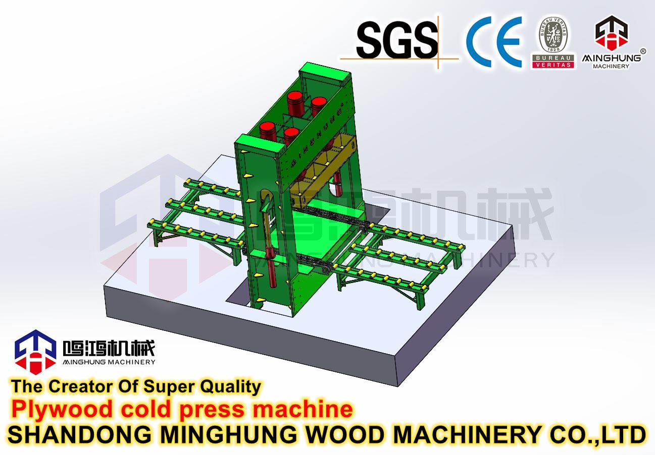 Normalmente, a pressão da máquina de prensagem a frio pode ser de 400 toneladas, 500 toneladas e 600 toneladas, para tamanho padrão de compensado de 4 x 8 pés, prensas a frio de 500 toneladas são boas e suficientes.