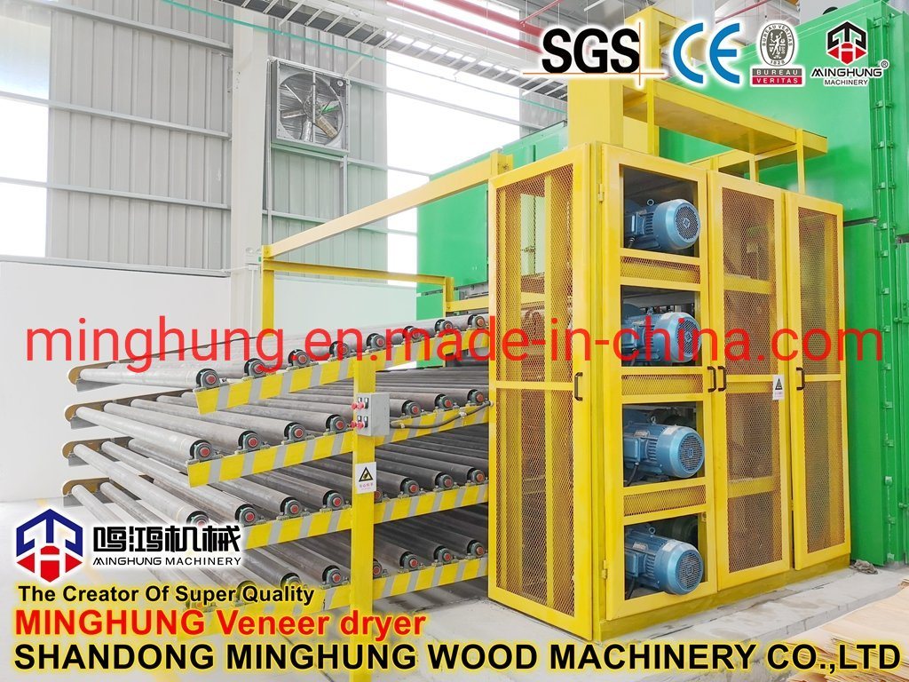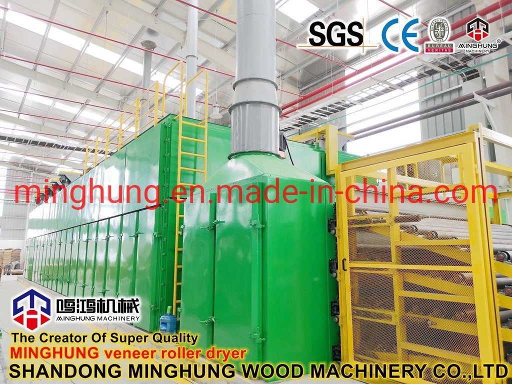 O que é um secador de folheado?MINGHUNG Secador de folheado de rolo para secar folheado de madeira original, remove umidade abundante, no final, a umidade do folheado de madeira será de 5% a 10%, por isso é adequado para fazer madeira compensada.