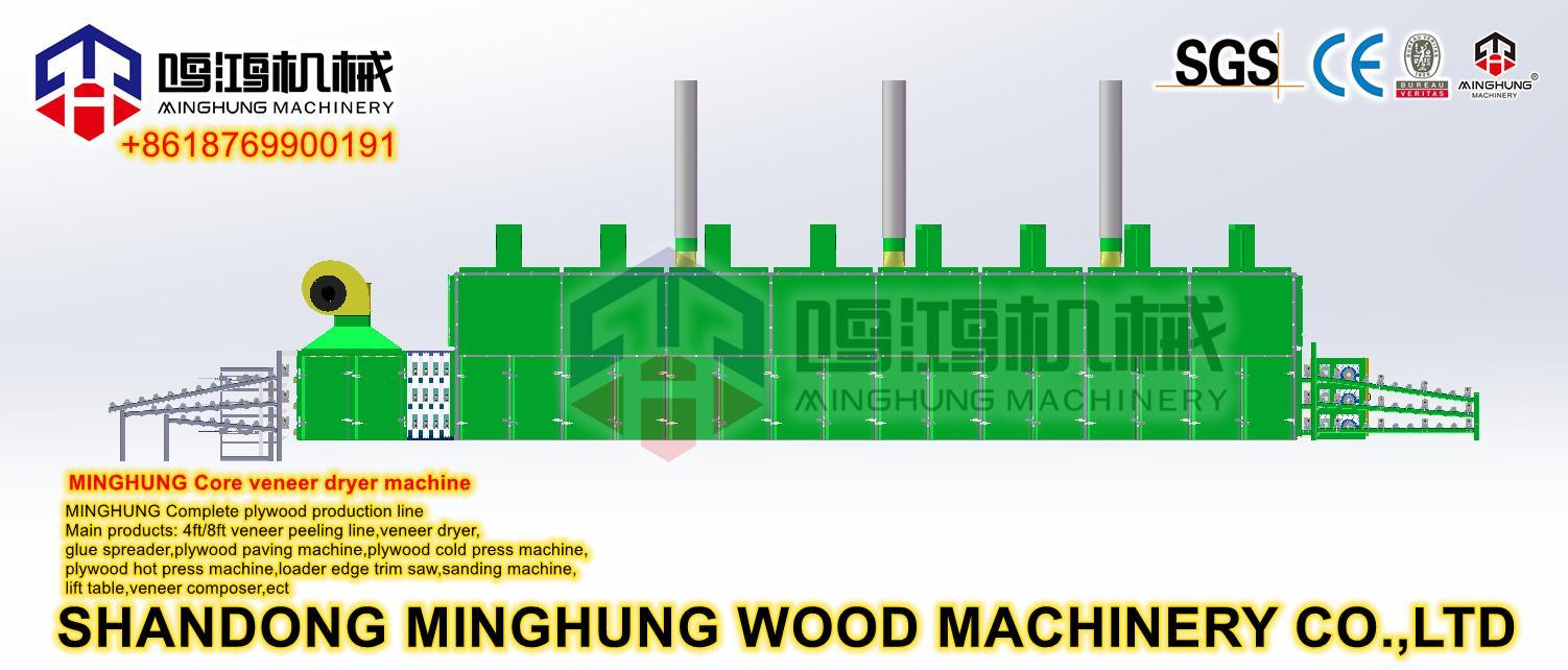 O que é um secador de folheado?MINGHUNG Secador de folheado de rolo para secar o folheado de madeira original, remova a umidade abundante, no final, a umidade do folheado de madeira será de 5% a 10%, por isso é adequado para fazer compensado.Rolo de folheado secador são adequados para grande capacidade de secagem por dia, pode ser diferente comprimento, largura