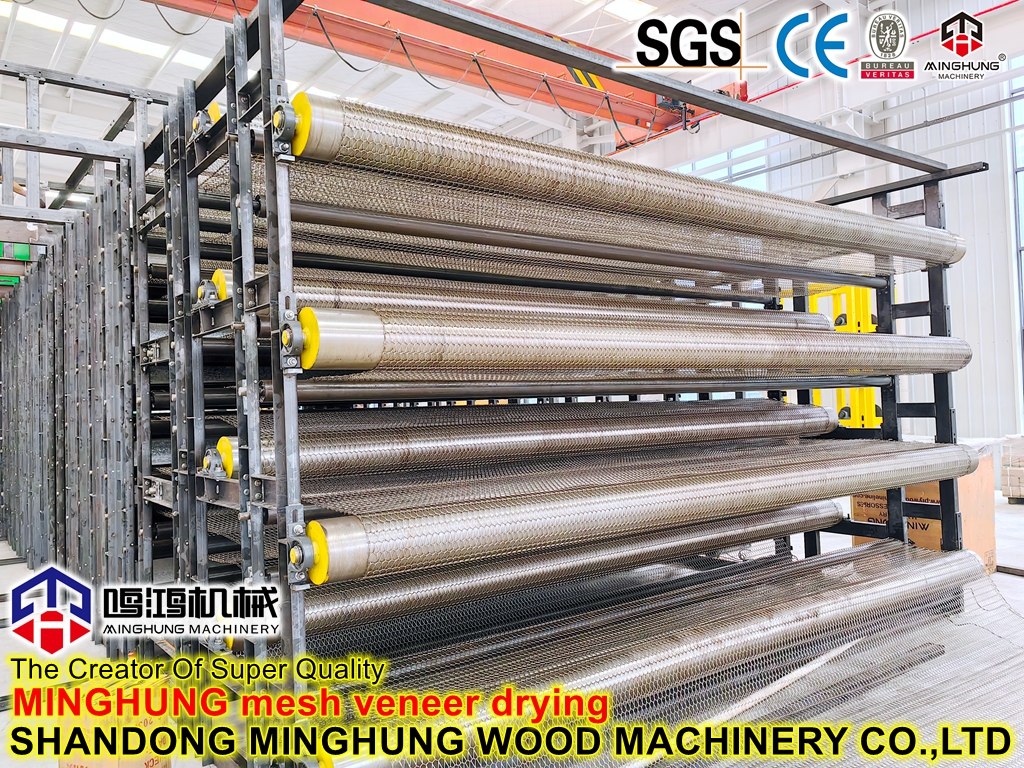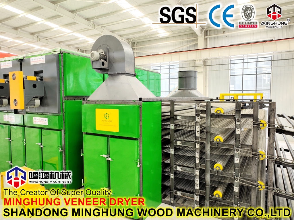 O que é um secador de folheado?MINGHUNG Secador de folheado de rolo para secar o folheado de madeira original, remova a umidade abundante, no final, a umidade do folheado de madeira será de 5% a 10%, por isso é adequado para fazer compensado.Rolo de folheado secador são adequados para grande capacidade de secagem por dia, pode ser diferente comprimento, largura
