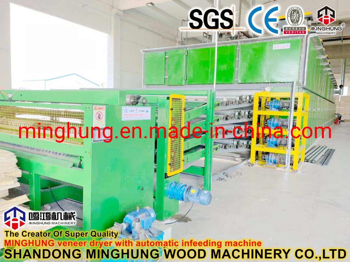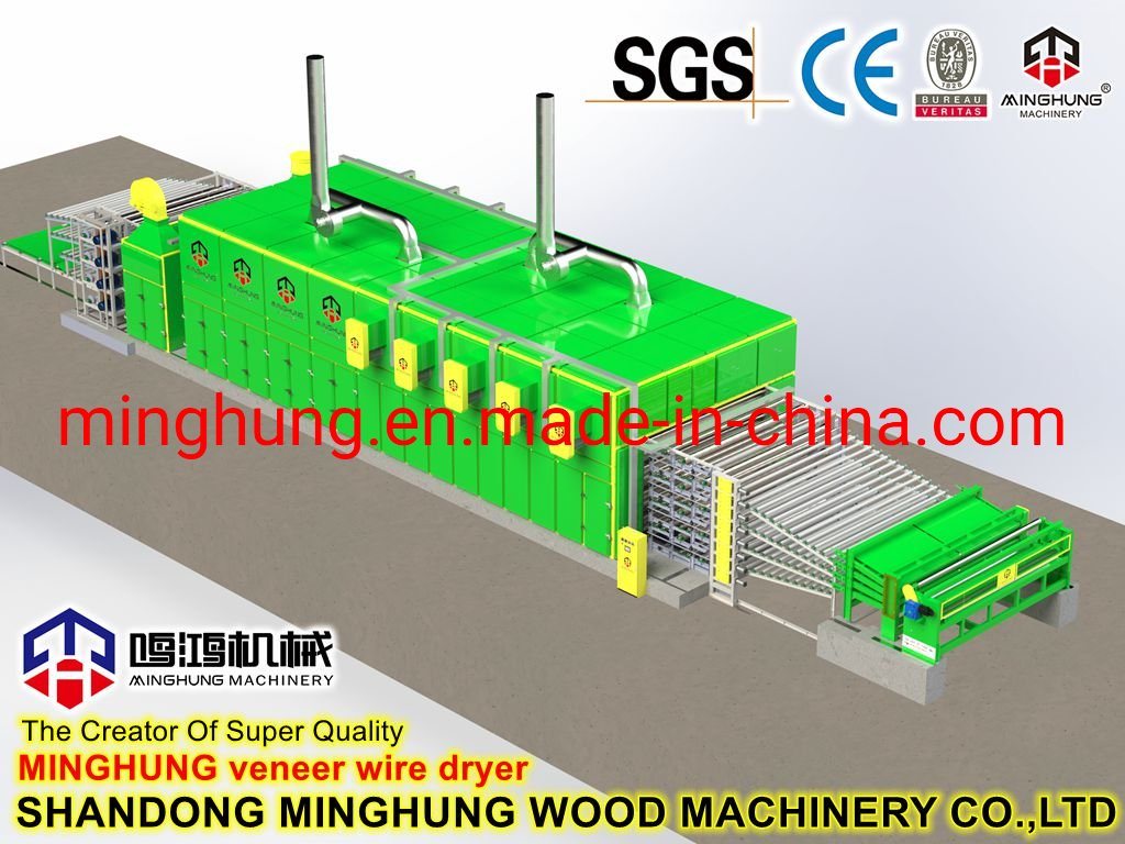 O que é um secador de folheado?MINGHUNG Secador de folheado de rolo para secar o folheado de madeira original, remova a umidade abundante, no final, a umidade do folheado de madeira será de 5% a 10%, por isso é adequado para fazer compensado.Rolo de folheado secador são adequados para grande capacidade de secagem por dia, pode ser diferente comprimento, largura