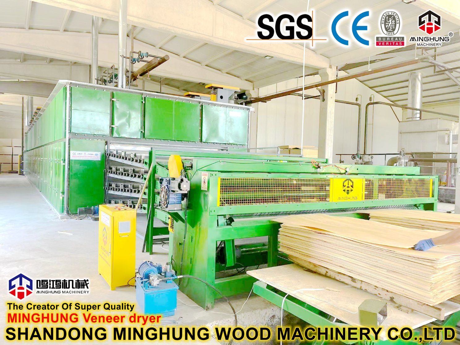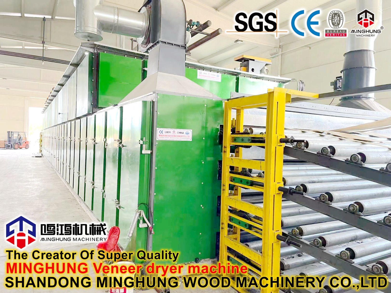 O que é um secador de folheado?MINGHUNG Secador de folheado de rolo para secar o folheado de madeira original, remova a umidade abundante, no final, a umidade do folheado de madeira será de 5% a 10%, por isso é adequado para fazer compensado.Rolo de folheado secador são adequados para grande capacidade de secagem por dia, pode ser diferente comprimento, largura
