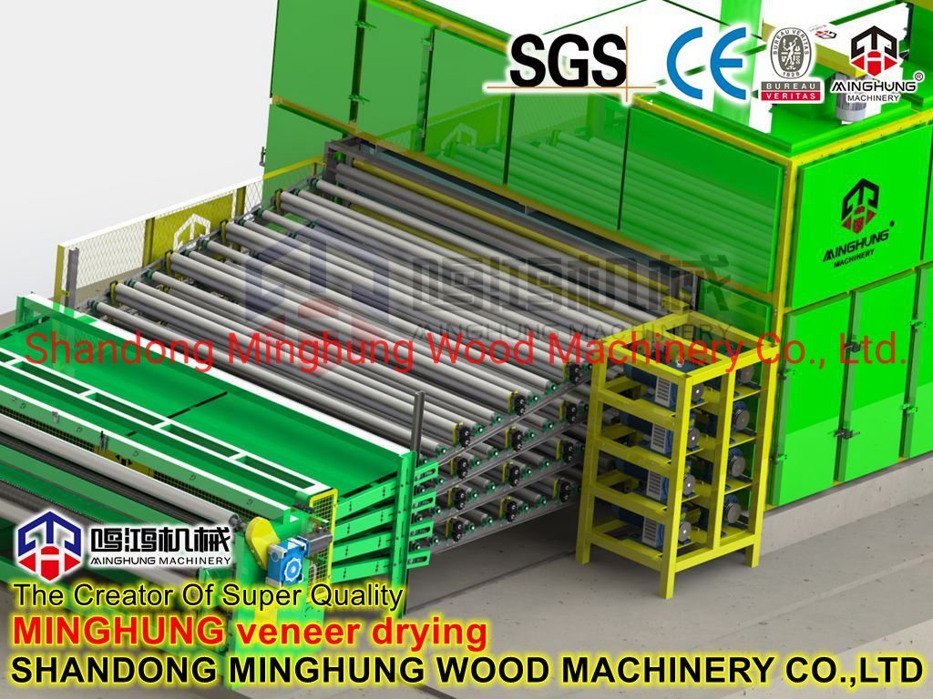 O que é um secador de folheado?MINGHUNG Secador de folheado de rolo para secar o folheado de madeira original, remova a umidade abundante, no final, a umidade do folheado de madeira será de 5% a 10%, por isso é adequado para fazer compensado.Rolo de folheado secador são adequados para grande capacidade de secagem por dia, pode ser diferente comprimento, largura