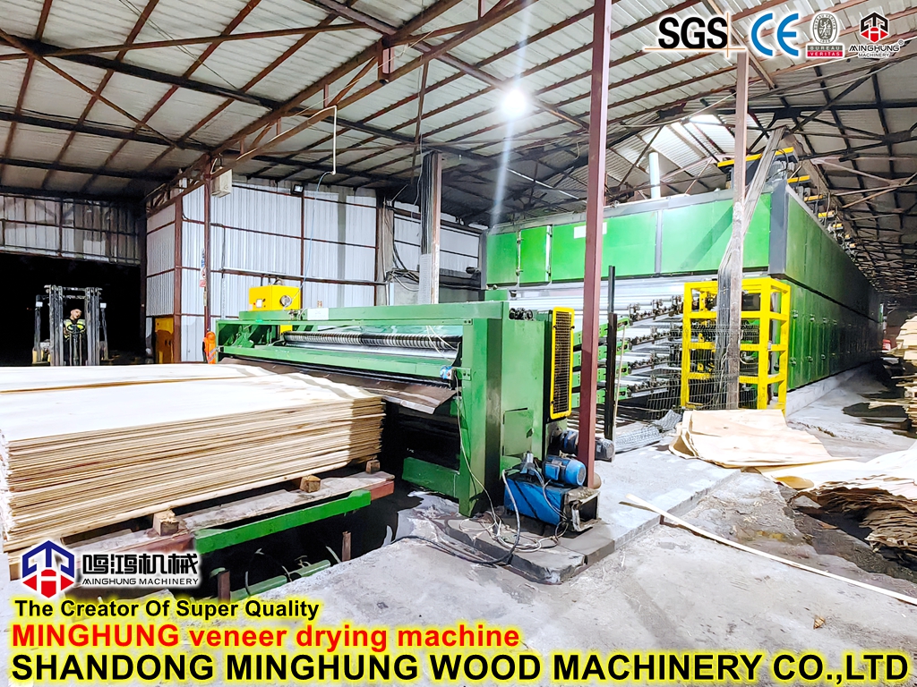 O que é um secador de folheado?MINGHUNG Secador de folheado de rolo para secar o folheado de madeira original, remova a umidade abundante, no final, a umidade do folheado de madeira será de 5% a 10%, por isso é adequado para fazer compensado.Rolo de folheado secador são adequados para grande capacidade de secagem por dia, pode ser diferente comprimento, largura