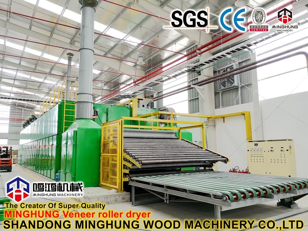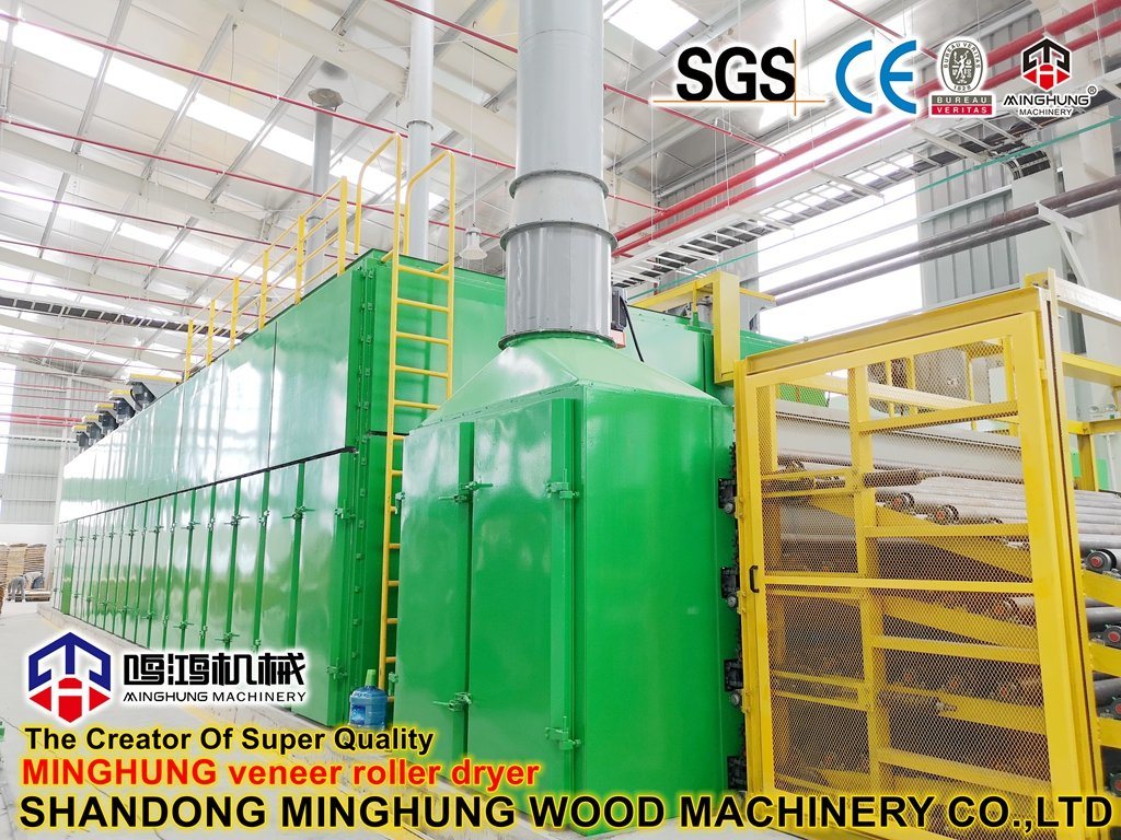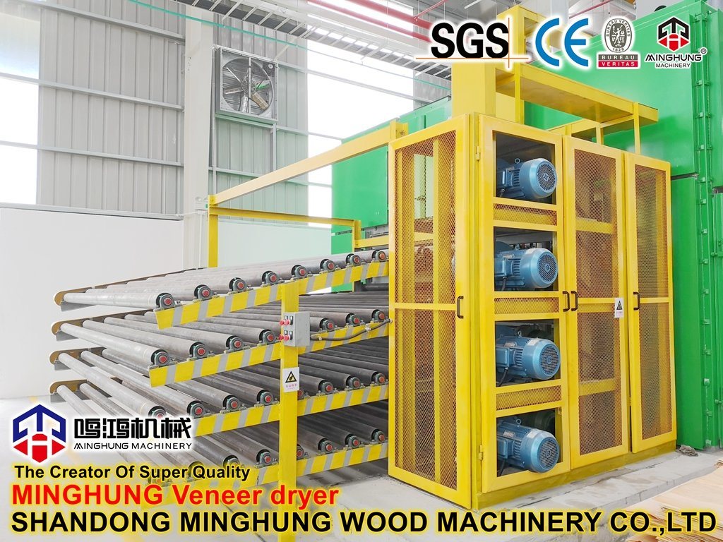 O que é um secador de folheado?MINGHUNG Secador de folheado de rolo para secar o folheado de madeira original, remova a umidade abundante, no final, a umidade do folheado de madeira será de 5% a 10%, por isso é adequado para fazer compensado.Rolo de folheado secador são adequados para grande capacidade de secagem por dia, pode ser diferente comprimento, largura