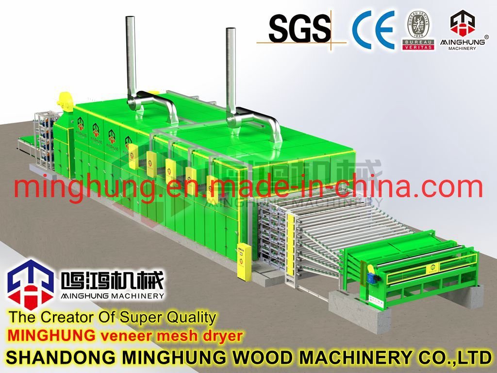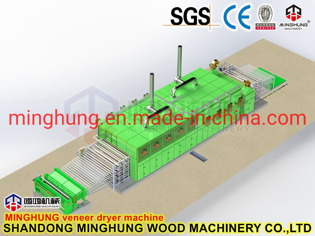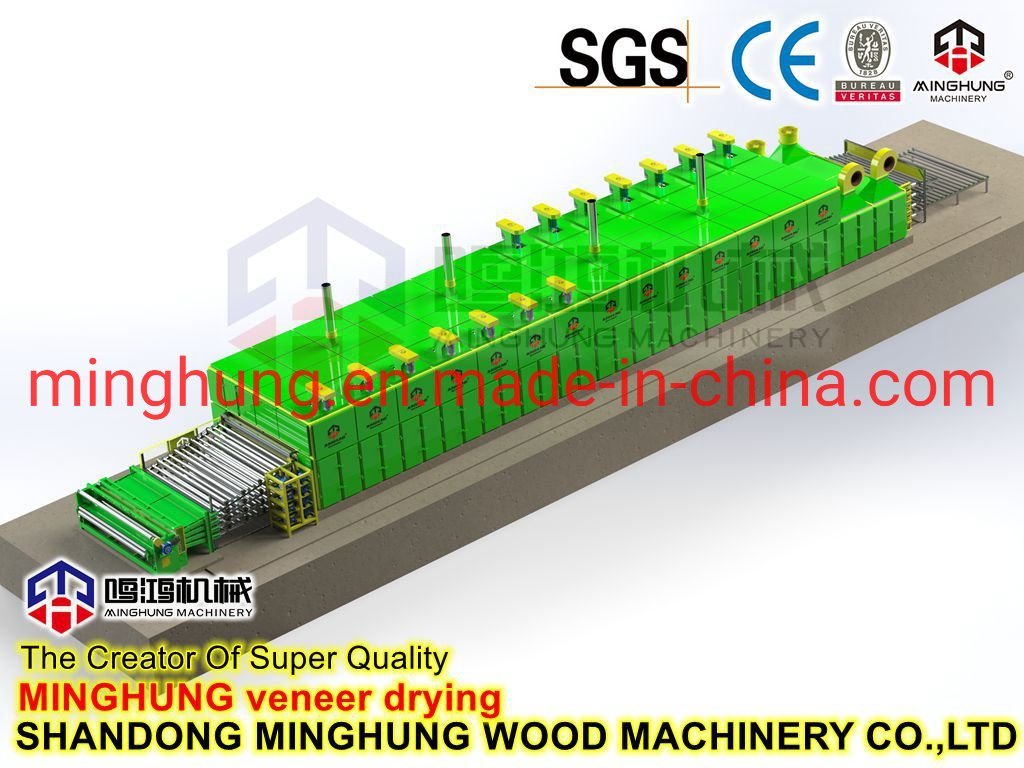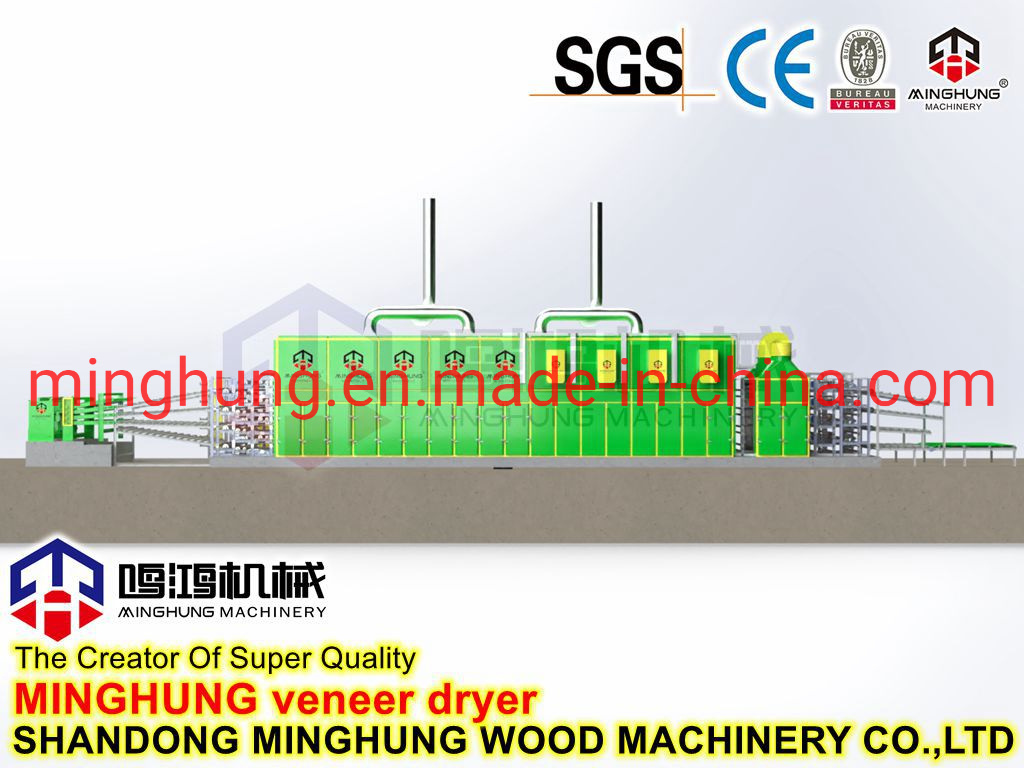 O que é um secador de folheado?MINGHUNG Secador de folheado de rolo para secar folheado de madeira original, remove umidade abundante, no final, a umidade do folheado de madeira será de 5% a 10%, por isso é adequado para fazer madeira compensada.