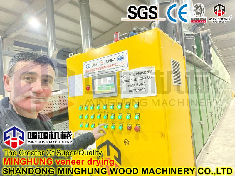 Shandong MINGHUNG Wood Machinery Co., Ltd é um fabricante famoso de máquinas de compensado na China, nosso produto Secador de folheado de malha também é chamado de secador de arame, para secar folheado de madeira original, remover umidade abundante, no final, o folheado de madeira a umidade será de 5% a 10%, por isso é adequado para fazer madeira compensada.