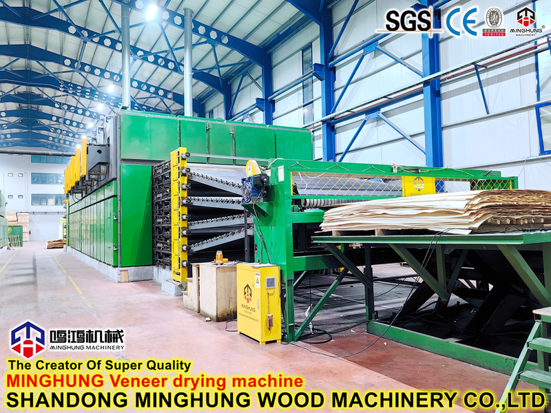 O que é um secador de folheado?MINGHUNG Secador de folheado de rolo para secar o folheado de madeira original, remova a umidade abundante, no final, a umidade do folheado de madeira será de 5% a 10%, por isso é adequado para fazer compensado.Rolo de folheado secador são adequados para grande capacidade de secagem por dia, pode ser diferente comprimento, largura