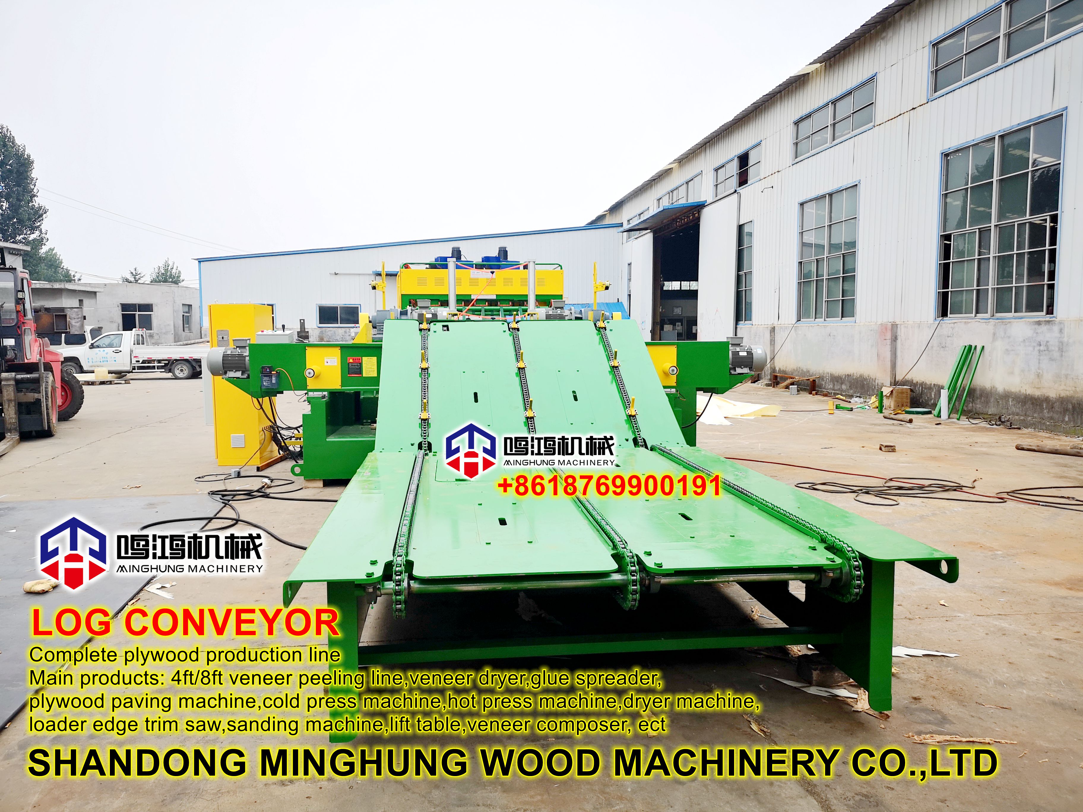 A máquina/torno de descascamento de folheado pode ter tamanhos diferentes, pode ter 4 pés, comprimento máximo do tronco 1300 mm, diâmetro máximo 550 mm, velocidade máxima 80 m/min, faixa de espessura 0,5-4,0 mm;a máquina de folheado também pode ter 8 pés, comprimento máximo do tronco 2600 mm, diâmetro máximo 600 mm, velocidade máxima 48 m/min, faixa de espessura 0,3-3,5 mm.